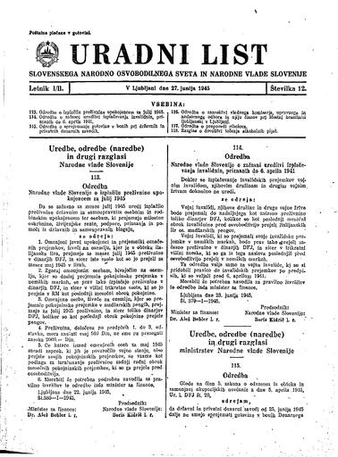 Uradni list Slovenskega narodno osvobodilnega sveta in Narodne vlade Slovenije / Uradni list Ljudske republike Slovenije (1945-1955)