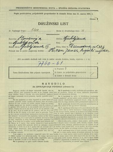 SI_ZAL_LJU/0504, t.e. 308, Popis prebivalstva 31. 3. 1931, Černetova ul. - Dermotova ul.