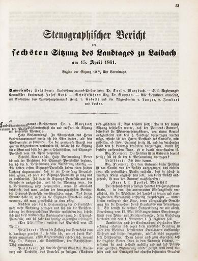 • Originalni naslov: Stenographischer Bericht der sechster Sitzung des Landtages zu Laibach am 15. April 1861