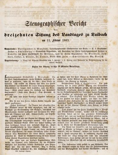 • Stenographischer Bericht der dreizehnten Sitzung des Landtages zu Laibach am 11. Februar 1863