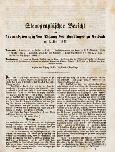 • Original title: Stenographischer Bericht der dreiundzwanzigsten Sitzung des Landtages zu Laibach am 9. März 1863