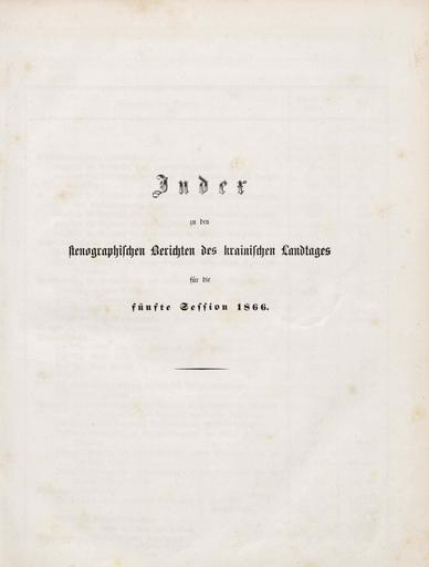 • Index zu den stenographischen Berichten des krainischen Landtages für die fünfte Session 1866