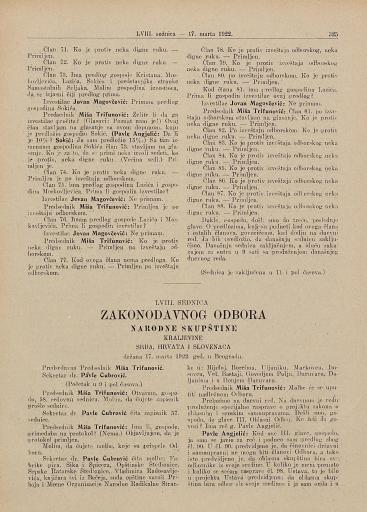 LVIII. sednica (17. mart 1922, Beograd)
