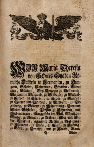 Zbirka raznih patentov, odlokov, predpisov, norm, navodil, okrožnic ipd., ki so jih izdali Karl VI., Marija Terezija in Jožef II.