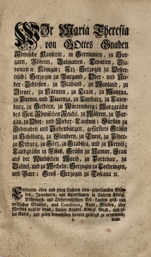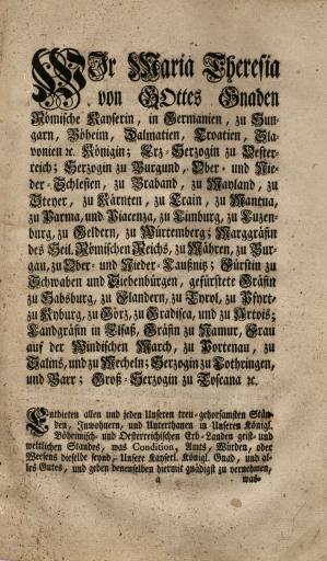 Zbirka raznih patentov, odlokov, predpisov, norm, navodil, okrožnic ipd., ki so jih izdali Karl VI., Marija Terezija in Jožef II.