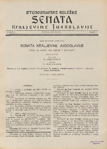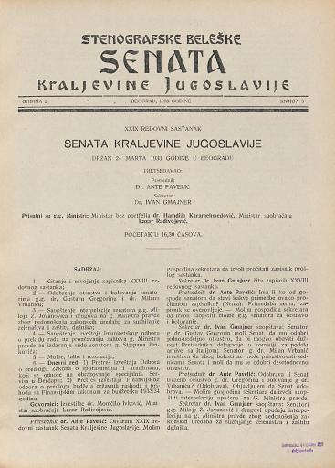SI AS 2058/7, Stenografske beležke Senata Kraljevine Jugoslavije, 1933