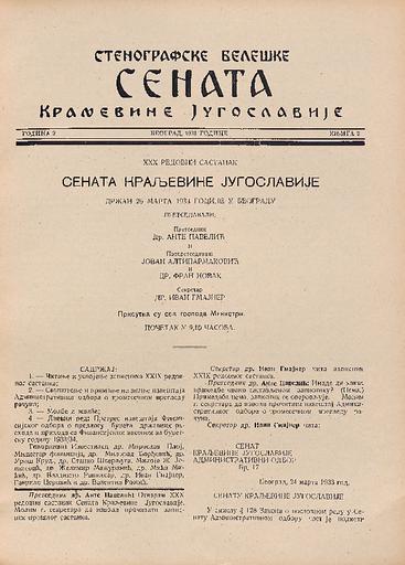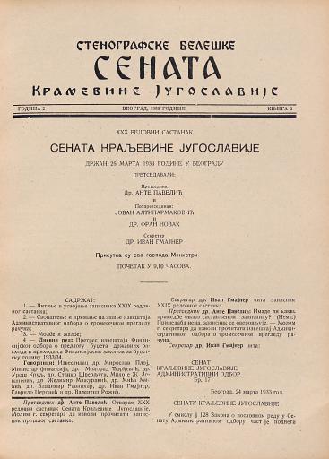 SI AS 2058/7, Stenografske beležke Senata Kraljevine Jugoslavije, 1933
