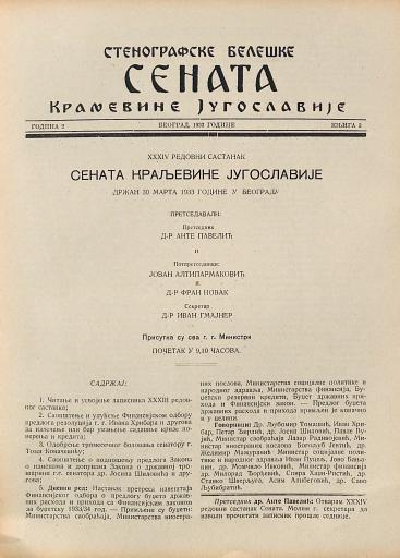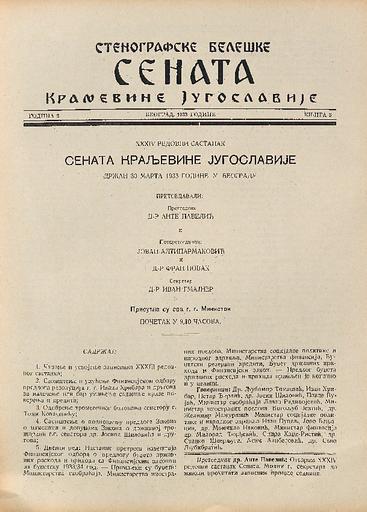 SI AS 2058/7, Stenografske beležke Senata Kraljevine Jugoslavije, 1933