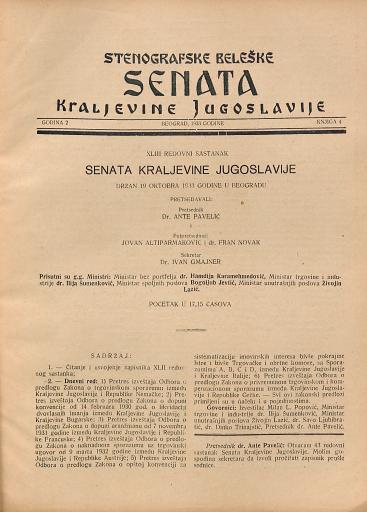 SI AS 2058/8, Stenografske beležke Senata Kraljevine Jugoslavije, 1933
