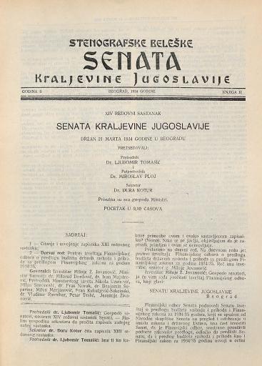 SI AS 2058/10, Stenografske beležke Senata Kraljevine Jugoslavije, 1934