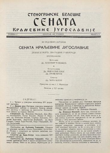SI AS 2058/10, Stenografske beležke Senata Kraljevine Jugoslavije, 1934