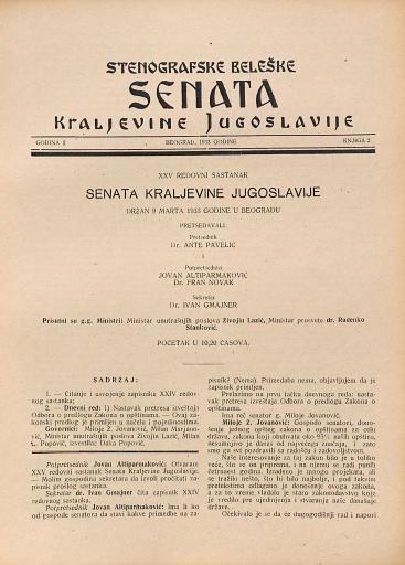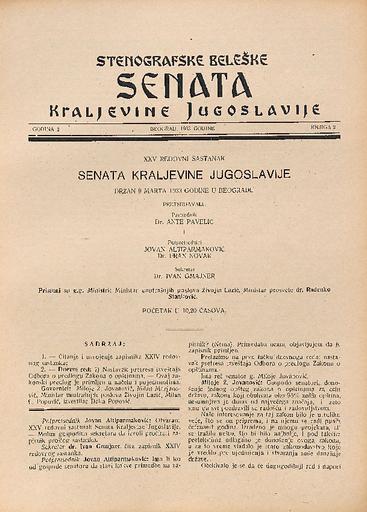 SI AS 2058/6, Stenografske beležke Senata Kraljevine Jugoslavije, 1933
