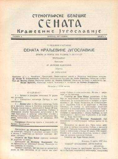 SI AS 2058/15, Stenografske beležke Senata Kraljevine Jugoslavije, 1936-1937