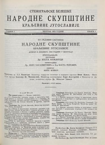 SI AS 2058/21, Stenografske beležke Narodne skupščine Kraljevine Jugoslavije, 1932-1933