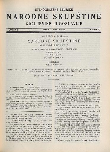 SI AS 2058/21, Stenografske beležke Narodne skupščine Kraljevine Jugoslavije, 1932-1933