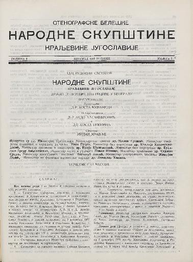 SI AS 2058/22, Stenografske beležke Narodne skupščine Kraljevine Jugoslavije, 1933