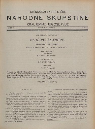 SI AS 2058/23, Stenografske beležke Narodne skupščine Kraljevine Jugoslavije, 1933-1934
