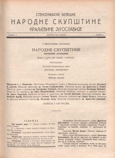 SI AS 2058/26, Stenografske beležke Narodne skupščine Kraljevine Jugoslavije, 1935