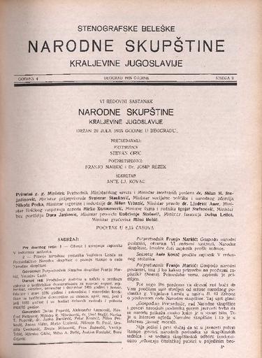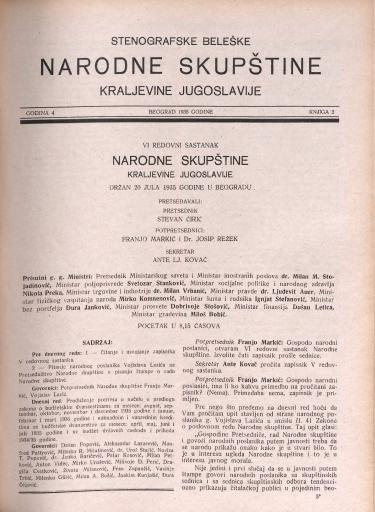 SI AS 2058/26, Stenografske beležke Narodne skupščine Kraljevine Jugoslavije, 1935