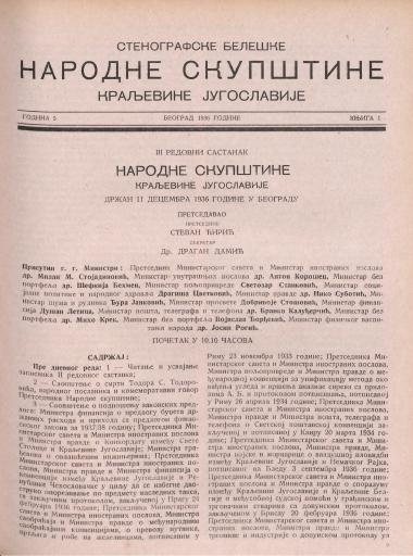 SI AS 2058/28, Stenografske beležke Narodne skupščine Kraljevine Jugoslavije, 1936-1937
