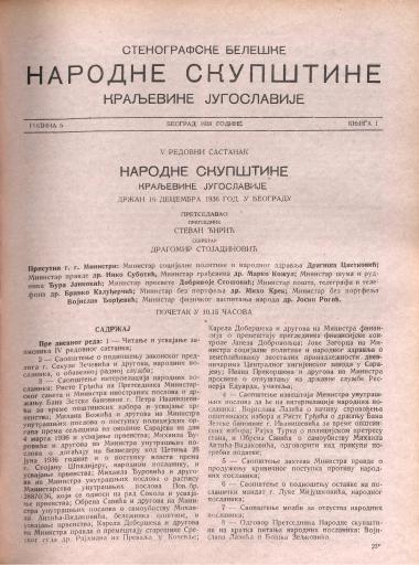 SI AS 2058/28, Stenografske beležke Narodne skupščine Kraljevine Jugoslavije, 1936-1937
