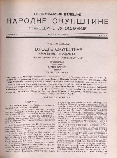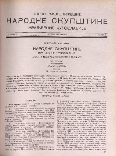 SI AS 2058/28, Stenografske beležke Narodne skupščine Kraljevine Jugoslavije, 1936-1937