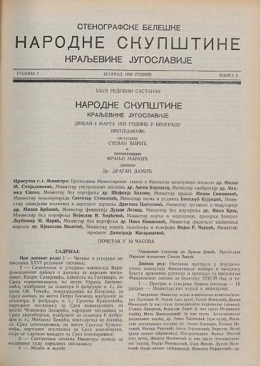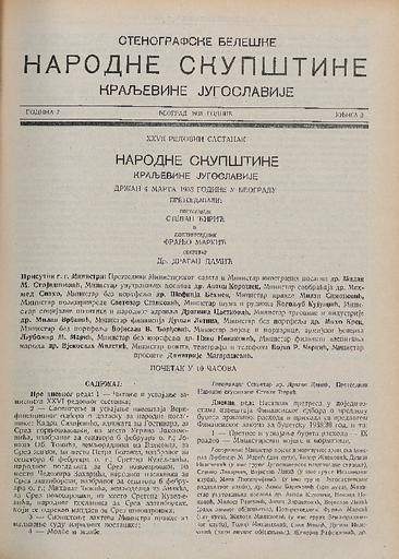 SI AS 2058/33, Stenografske beležke Narodne skupščine Kraljevine Jugoslavije, 1938