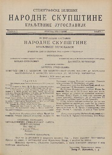 SI AS 2058/34, Stenografske beležke Narodne skupščine Kraljevine Jugoslavije, 1931-1932