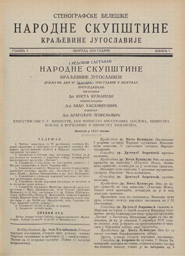 SI AS 2058/34, Stenografske beležke Narodne skupščine Kraljevine Jugoslavije, 1931-1932
