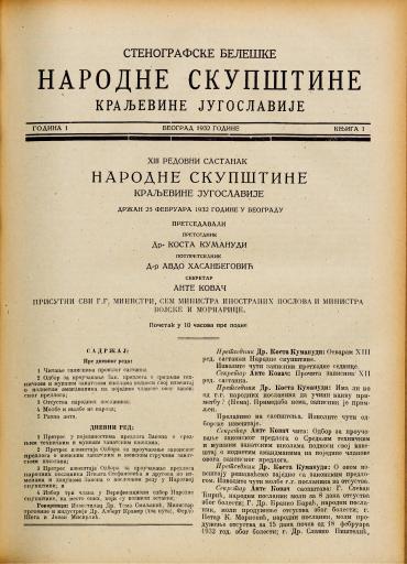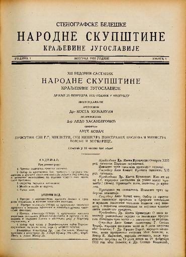 SI AS 2058/34, Stenografske beležke Narodne skupščine Kraljevine Jugoslavije, 1931-1932
