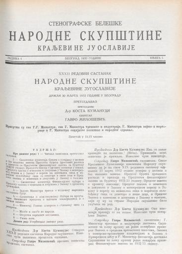SI AS 2058/35, Stenografske beležke Narodne skupščine Kraljevine Jugoslavije, 1932