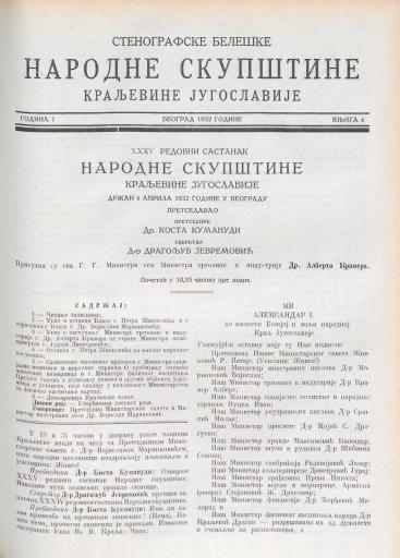 SI AS 2058/35, Stenografske beležke Narodne skupščine Kraljevine Jugoslavije, 1932