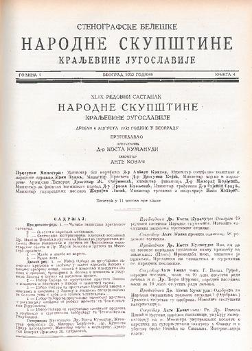 SI AS 2058/35, Stenografske beležke Narodne skupščine Kraljevine Jugoslavije, 1932
