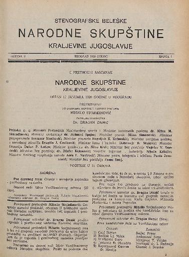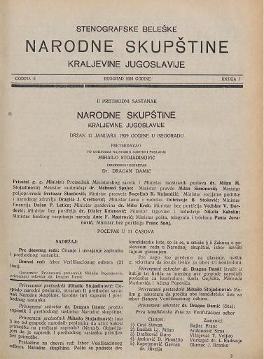 SI AS 2058/36, Stenografske beležke Narodne skupščine Kraljevine Jugoslavije, 1939