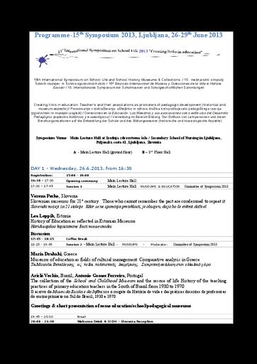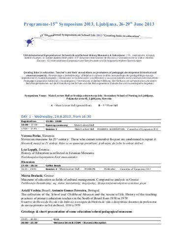 Programme of the 15th Symposium 2013, Ljubljana, 26-29th June 2013