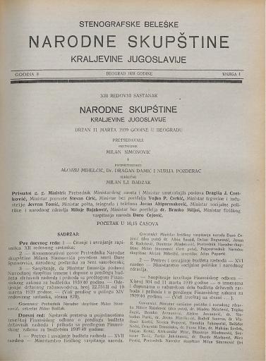 SI AS 2058/36, Stenografske beležke Narodne skupščine Kraljevine Jugoslavije, 1939