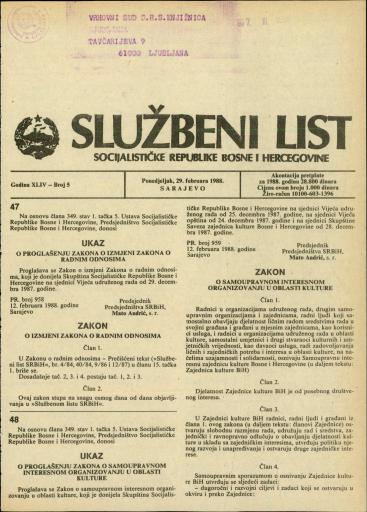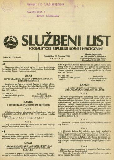Založnik(i):Službeni list SR BiH, Sarajevo
