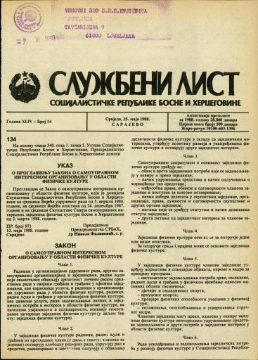 Založnik(i):Službeni list SR BiH, Sarajevo