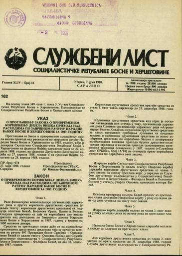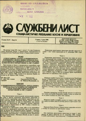 Založnik(i):Službeni list SR BiH, Sarajevo