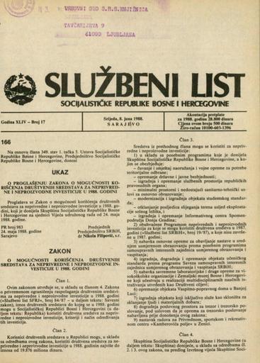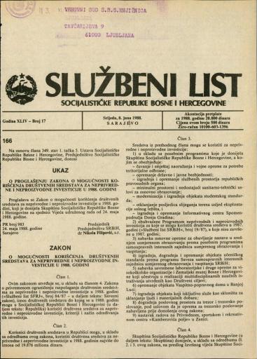 Založnik(i):Službeni list SR BiH, Sarajevo