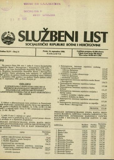 Založnik(i):Službeni list SR BiH, Sarajevo
