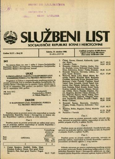 Založnik(i):Službeni list SR BiH, Sarajevo
