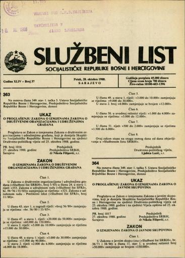 Založnik(i):Službeni list SR BiH, Sarajevo