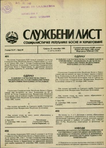 Založnik(i):Službeni list SR BiH, Sarajevo