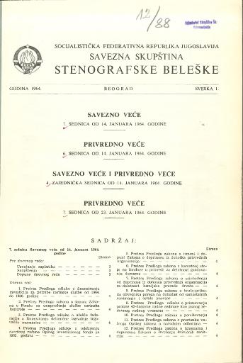 Savezno veće, 7. sednica od 14. januara 1964. godine