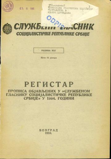 Ime:Službeni glasnik SR Srbije_1984_Kazalo.pdf