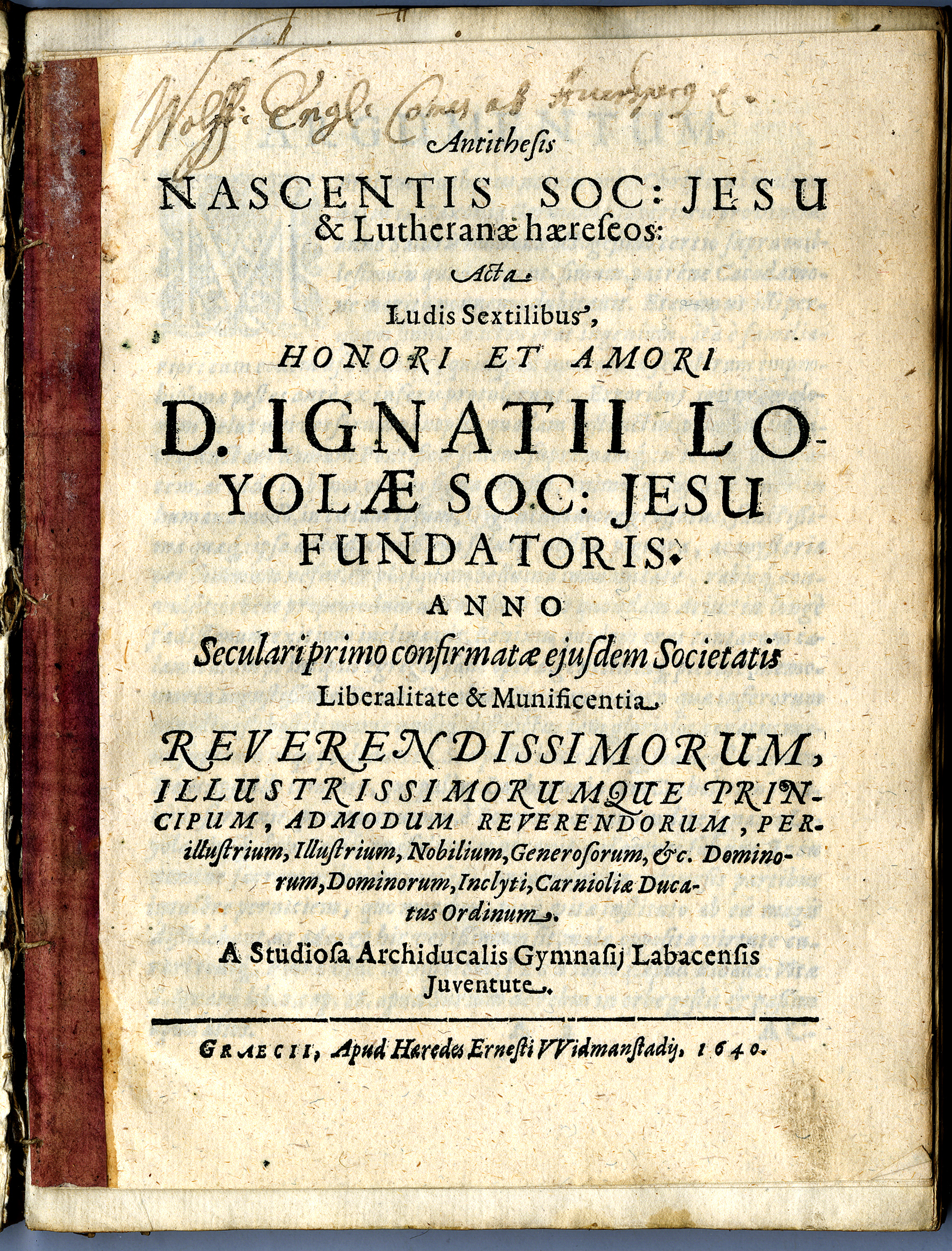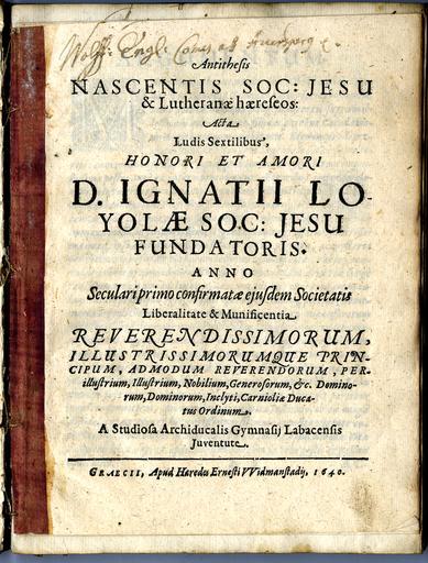 Faksimile: Ob stoti obletnici ustanovitve Družbe Jezusove 1640 (avgust): Antiteza novoustanovljenega jezuitskega reda in luteranskih heretikov